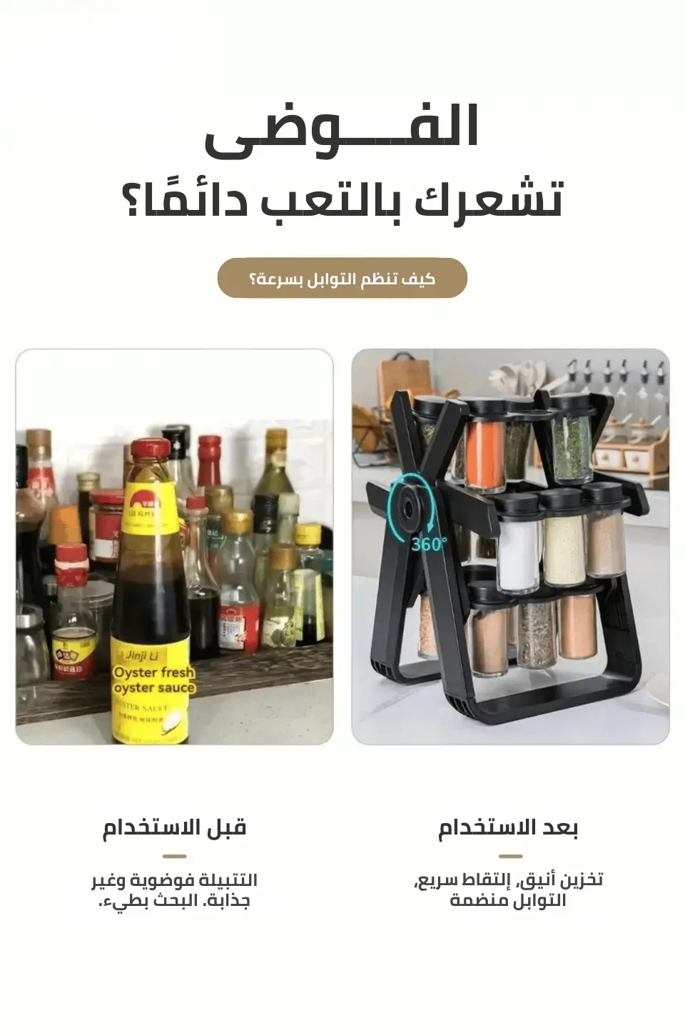 - ✅ تنظيم عملي للمطبخ: يجمع كل التوابل في مكان واحد ويسهّل الوصول إليها.